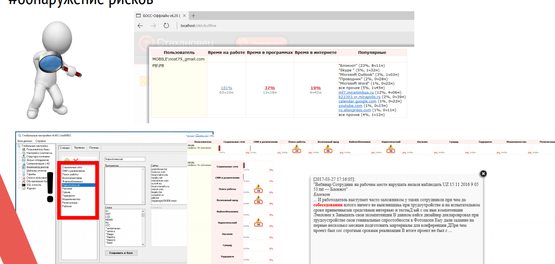 1.Контроль работы сотрудников на ПК и контроль всех файлов на ПК и работы с ними;